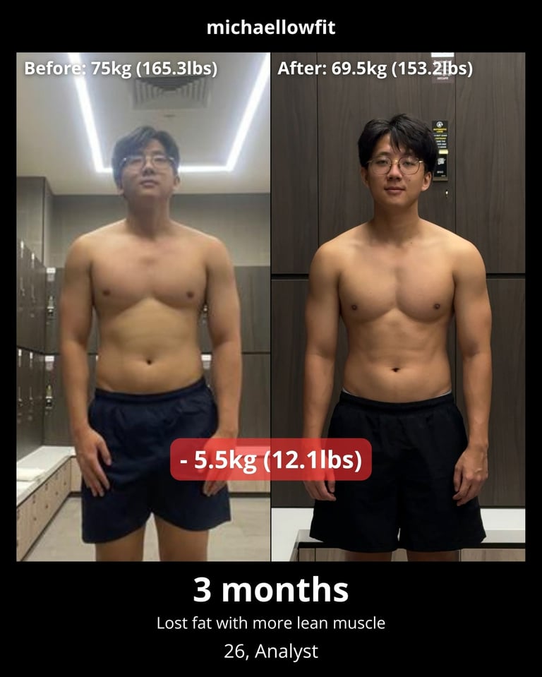 With a realistic structured plan training 3 days a week and strategies we made for him, he is consistently hitting his workouts, still eating out with friends, while losing fat, a smaller waist & building more lean muscle
